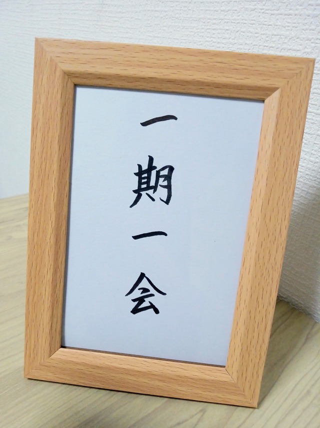 “Ichi-go-ichi-e.” It means “once-in-a-lifetime opportunity. Even if the same people gather for a tea ceremony as before, it does not mean that the people from before have appeared in front of you. It is the present person who is appearing. The meaning is that when you attend a tea ceremony, it is always a once-in-a-lifetime encounter. When dispatched, only the postcard will be included. The frame will not be supplied. The postcard measures approximately 15cm in height and 10cm in width. 「一生に一度の機会」という意味です。 お茶会は、たとえ以前と同じ人が集まったとしても、その以前の人が目の前に現れたのではありません。今のその人が現れているのです。 お茶会に臨む際には、常に一生に一度の出会いなのだ、という意味が込められています。 発送の際は、ポストカードのみになります。額縁は付いてきません。 ポストカードの大きさは、縦約15cm、横約10cmです。
